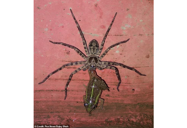 A 25-year-old man from India found these two creatures in his bathroom and pulled out of the phone to record because he knew how rare this moment was, a spider dragging a poor frog!