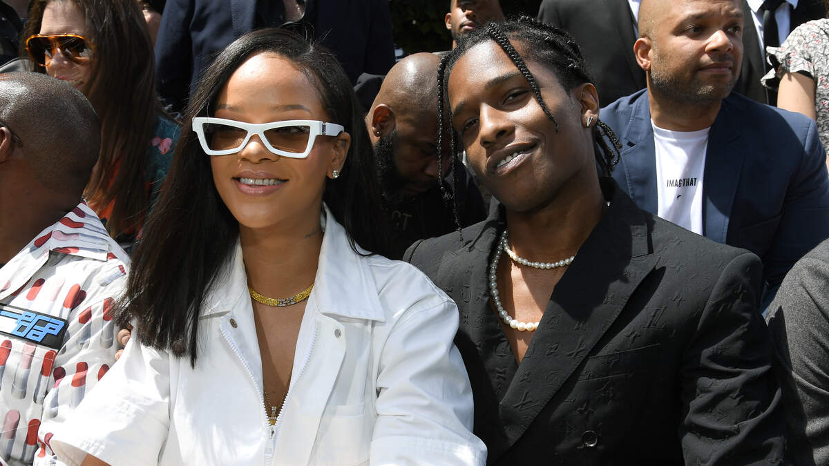 Rihanna wore a short, green sequined dress, while Rocky wore jean shorts, vans, and a white t-shirt.