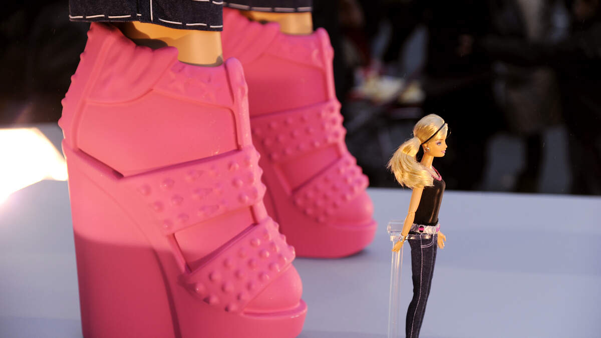 This is when a picture is taken with a foot or feet extended out as if it were in a high heels. It mimics the permanent state of a Barbie doll's feet.